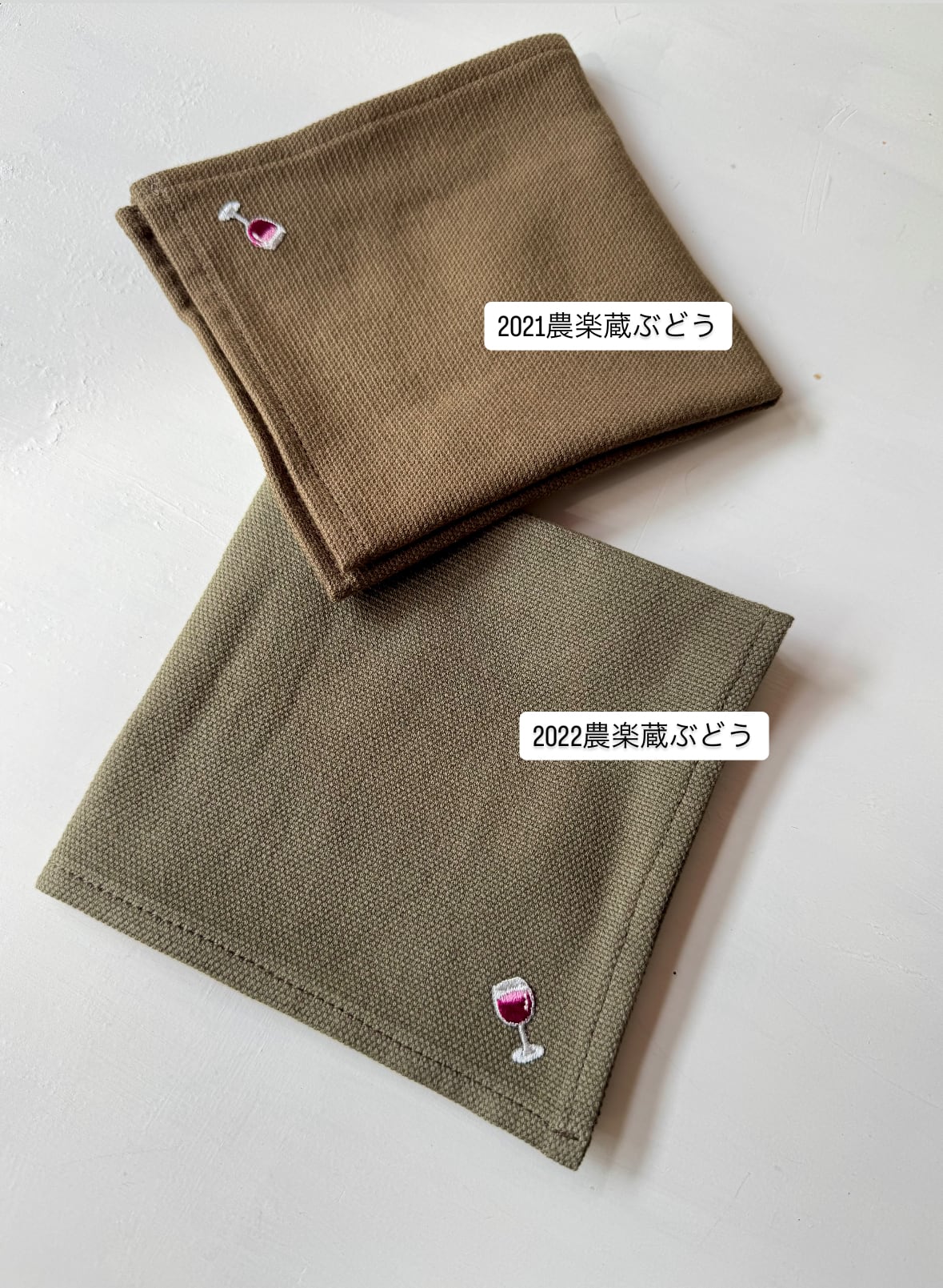 オーガニックコットンを使用したオリジナルタオルシャツ生地をハンカチにし、オリジナルアップリケを付けました☆