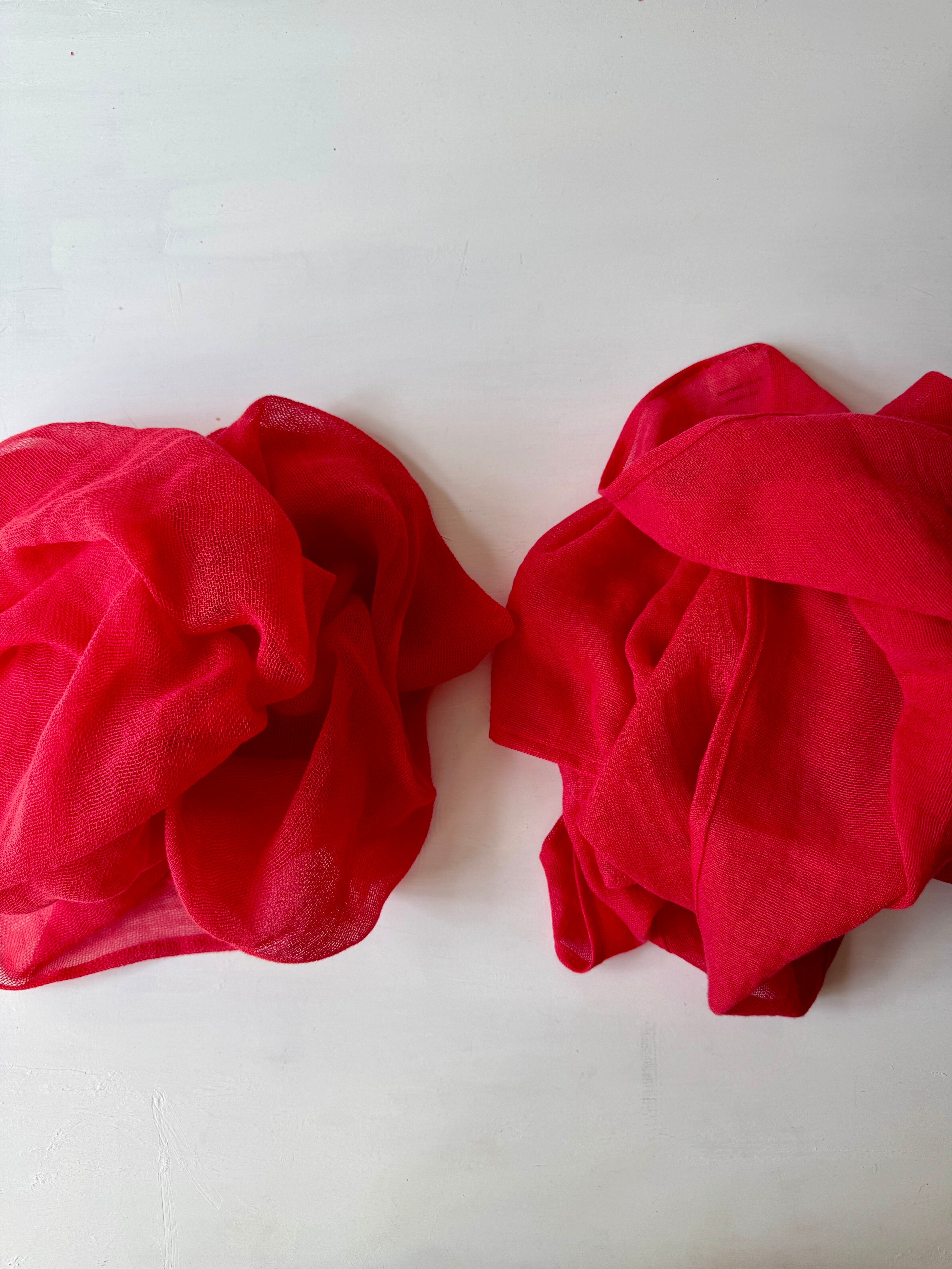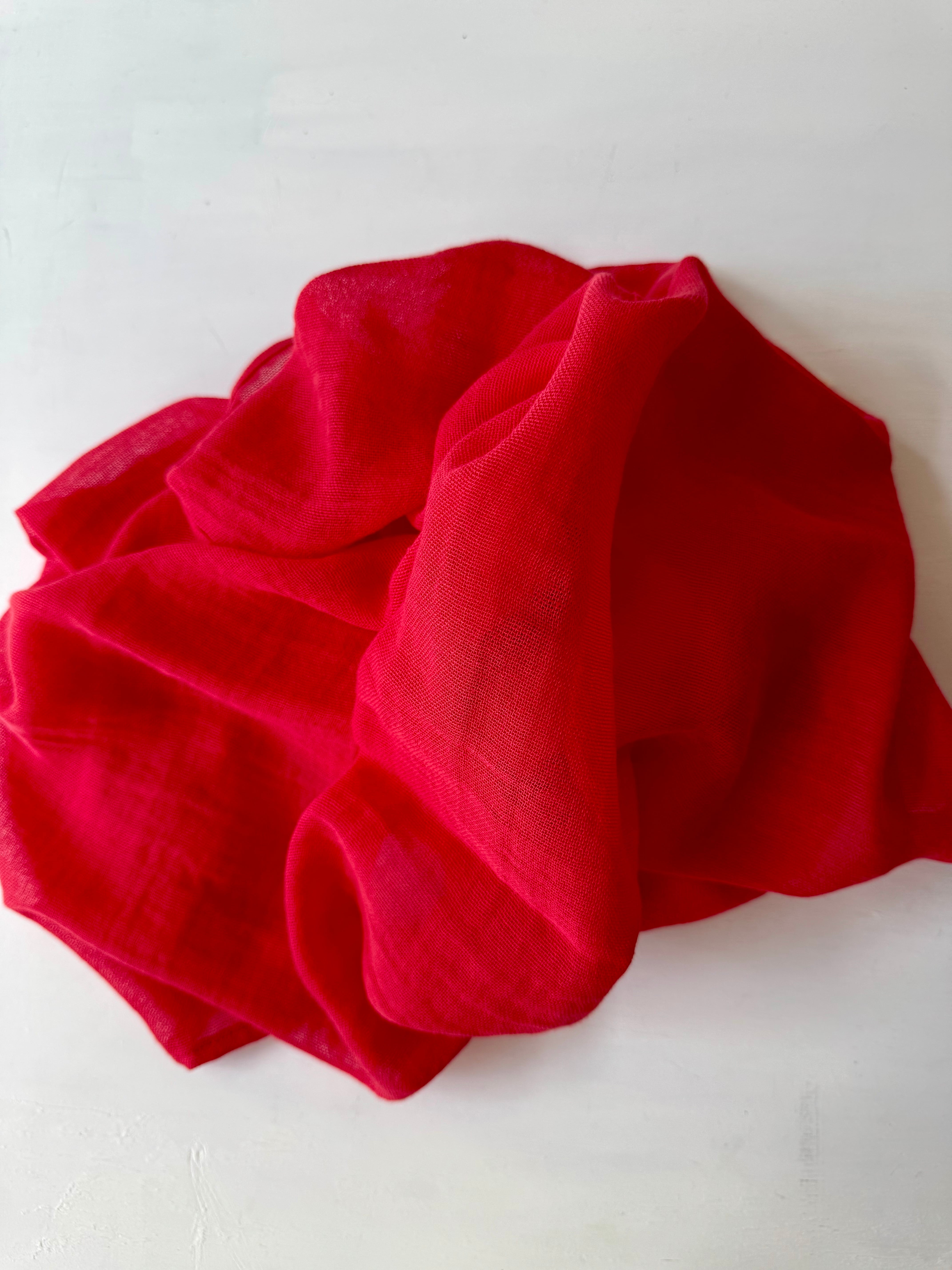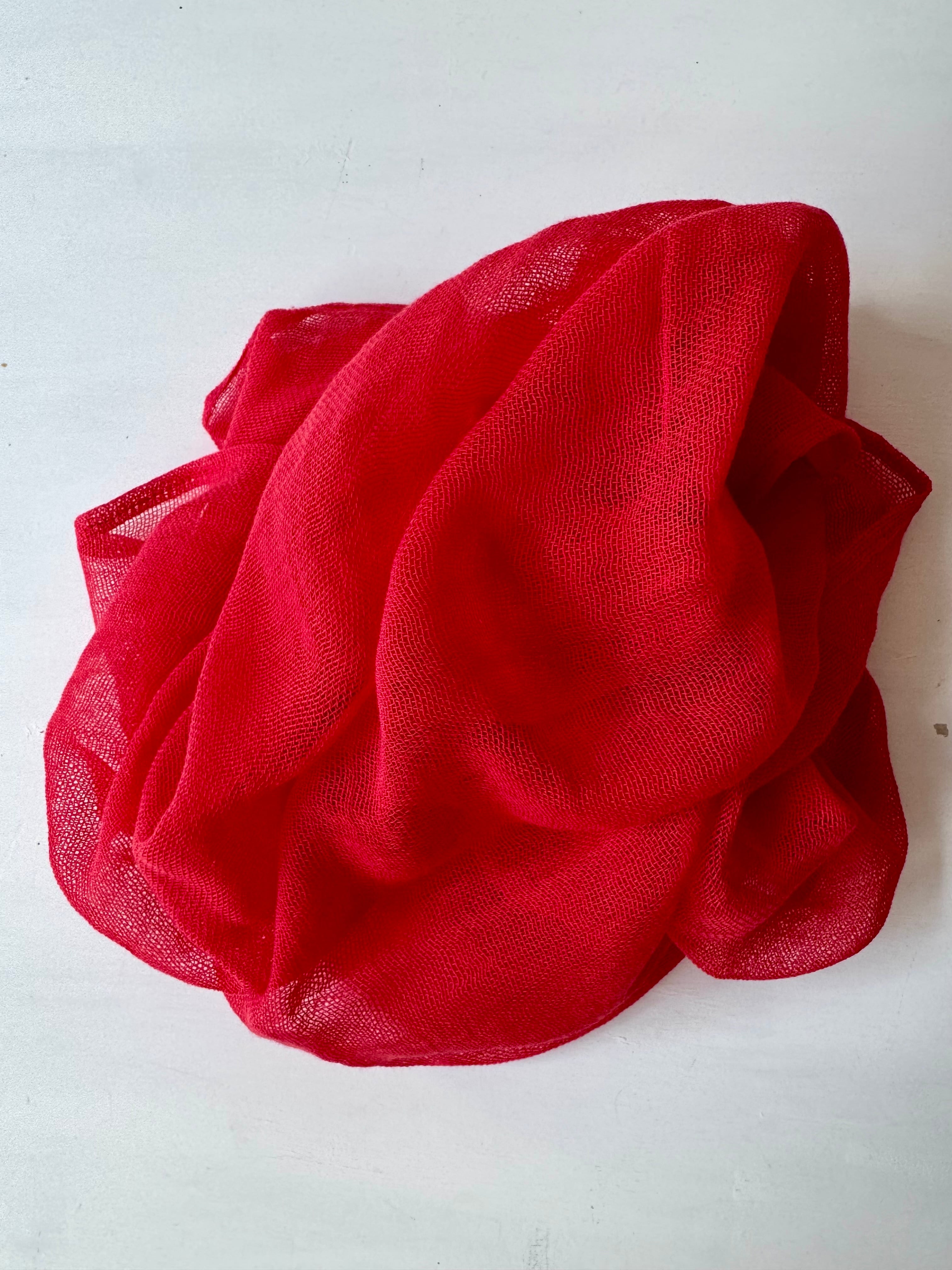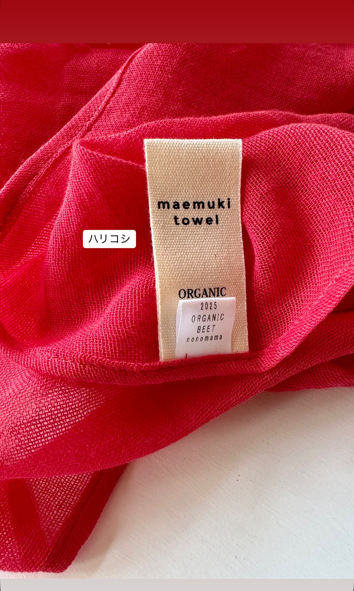 オーガニックコットンを使用した一重ガーゼストールは、愛媛県今治市で丁寧に織った一重ガーゼ生地を、北海道北斗市「nonomama」にて無農薬栽培されたビーツから色素を抽出し、美味しそうに染めました。