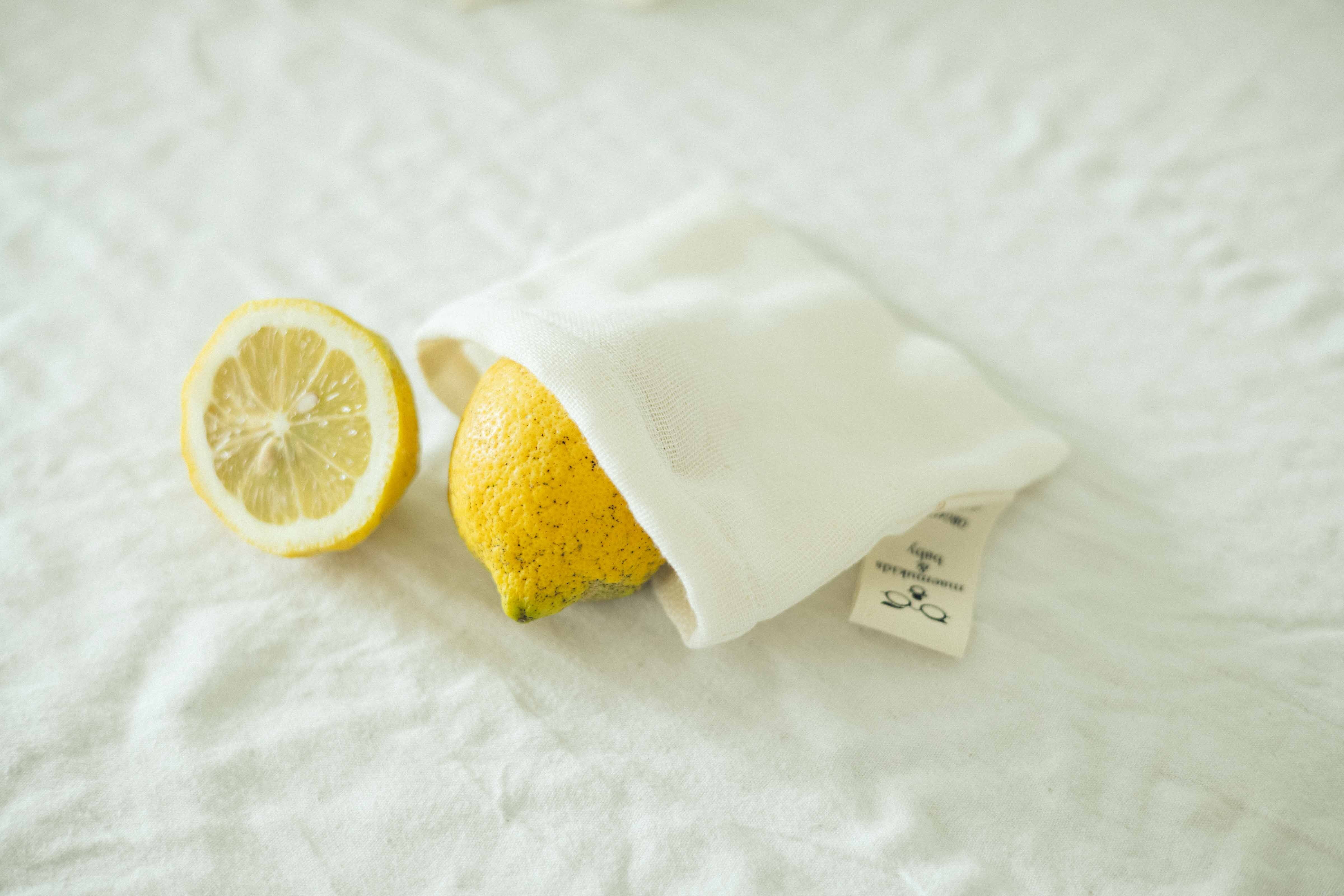 オーガニックコットンを使用し、愛媛県今治市で丁寧に織った三重ガーゼ生地で優しくお野菜を包みます。